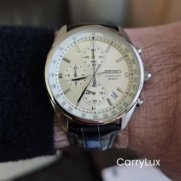 The Seiko SSB383P1 is ideal for men seeking a stylish chronograph watch that balances classic design with modern performance. Its elegant color palette and leather strap make it an excellent choice for office wear, formal occasions, and refined everyday use.
